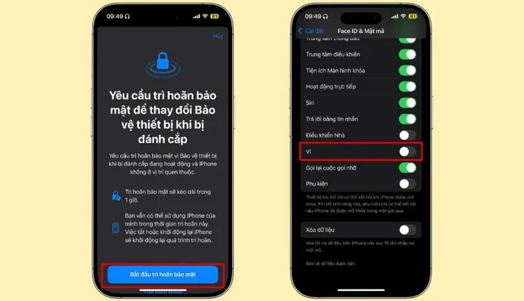 3️⃣ Tắt Face ID cho Ví – an toàn hơn khi ở nơi đông người