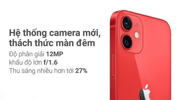 Không sở hữu cụm 3 camera trên phiên bản Pro và Pro Max nhưng iPhone 12 được trang bị một camera góc rộng và góc siêu rộng có độ phân giải 12MP được tích hợp nhiều trang bị công nghệ chụp hình tốt nhất, có tính năng chụp đêm Night Mode đem lại cho người dùng những tấm hình, video đẹp nhất, chi tiết hình ảnh tuyệt vời, màu sắc chính xác và bạn có thể bắt trọn mọi khoảnh khắc của cuộc sống.
