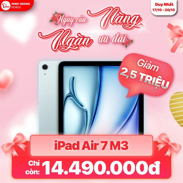 iPad Air M3 WiFi Fullbox giảm trực tiếp 2.500.000đ, chỉ còn 14.490.000đ.