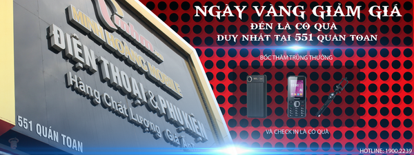 - Chương trình sẽ được diễn ra tại Minh Hoàng Mobile cơ sở 4 - 551 Đường Hùng Vương/ Quán Toan/ Hồng Bàng/ Hải Phòng.