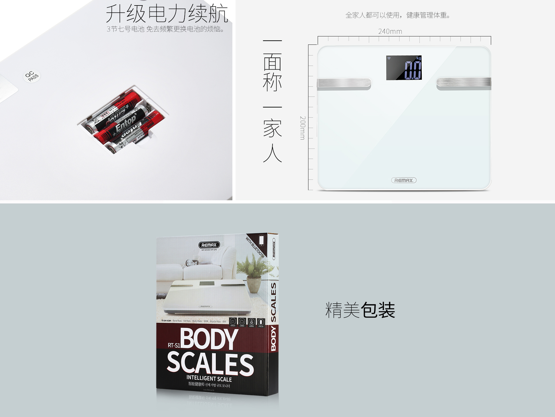 Cân thông minh Remax Rt-S1 rất thích hợp cho gia đình và các bạn yêu thể thao, các bạn tập GYM,tiện theo dõi lượng cơ và mỡ trong cơ thể, các Bà mẹ đang mang thai cần tính trọng lượng baby của mình