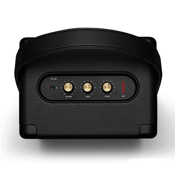Bảng điều khiển nằm phía mặt trên của loa Marshall Tufton cũng được sắp xếp vô cùng tối giản cho người dùng dễ dàng sử dụng. Các nút điều khiển dạng xoay hoàn hảo, tạo điều kiện cho người dùng có thể dễ dàng tùy chỉnh âm lượng, âm bass và âm treble theo sở thích của mình.